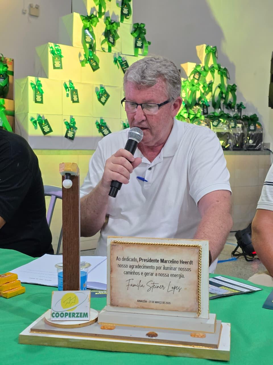 O presidente, Marcelino Heerdt, destacou os avanços da cooperativa, apresentando um panorama da dívida herdada e os investimentos realizados nos últimos anos.