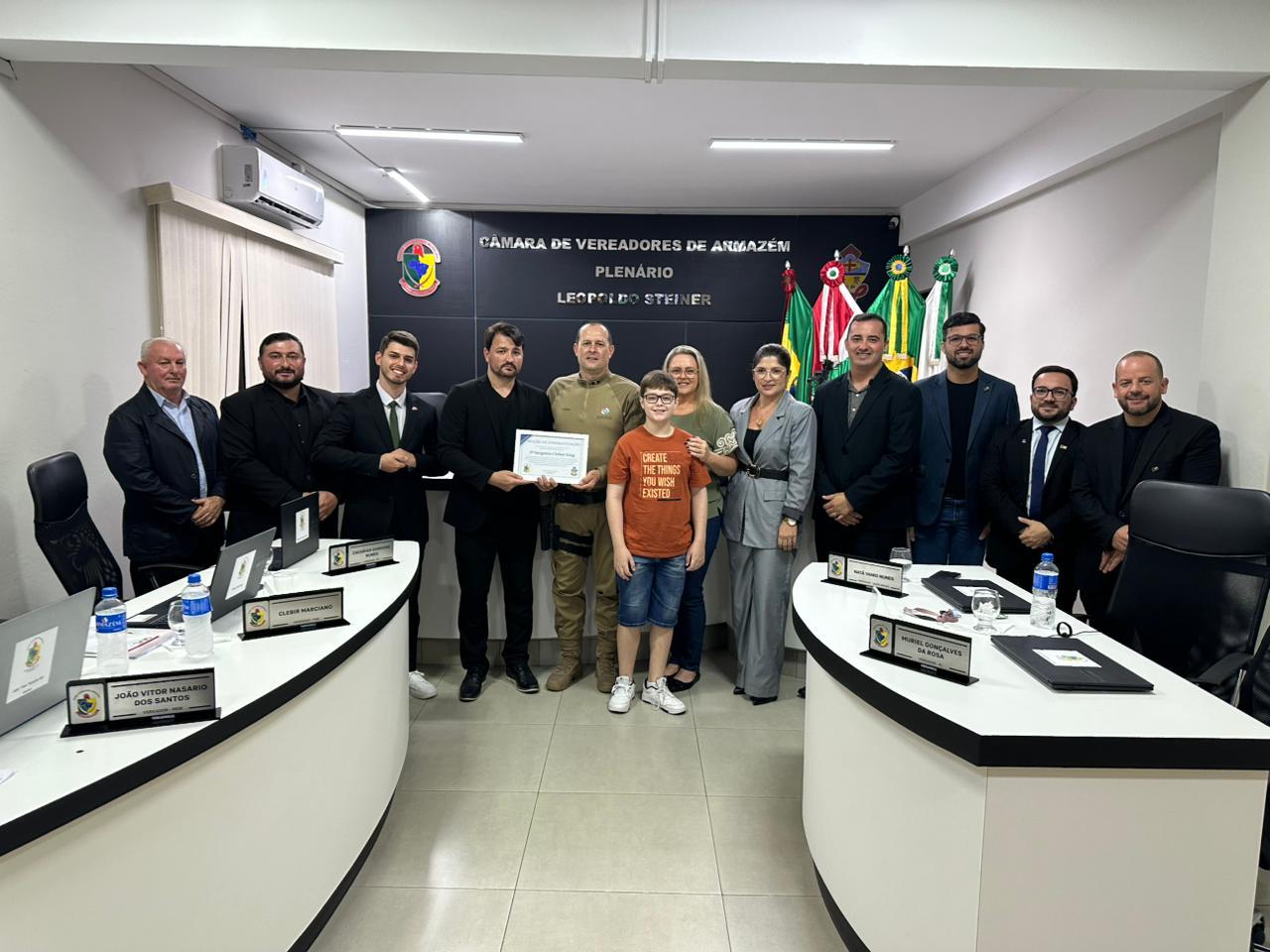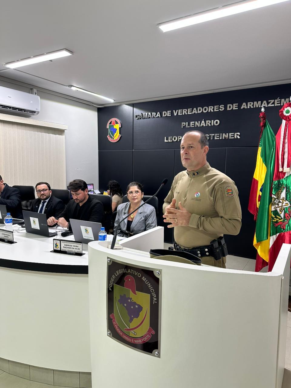 Os vereadores de Armazém concederam uma Moção de Congratulação ao 3º Sargento da Polícia Militar, Cléber Eing, em reconhecimento ao relevante trabalho desempenhado à frente do 2º Grupo do 2º Pelotão da 2ª Companhia da Polícia Militar, no período de setembro de 2021 a dezembro de 2025. A homenagem destaca sua atuação no fortalecimento da missão institucional, especialmente na ampliação do acesso da comunidade aos programas preventivos da corporação.