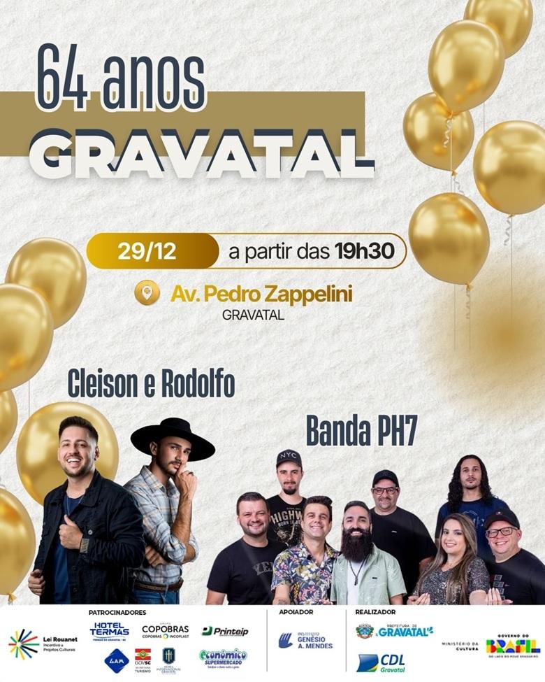 Gravatal - Gravatal vive dias de festa no fim de dezembro com uma programação especial que celebra os 64 anos de emancipação político-administrativa do município, no dia 29, e a chegada de 2026 com uma grande festa de Réveillon, no dia 31. As comemorações prometem reunir moradores e visitantes em momentos de confraternização, música e alegria.