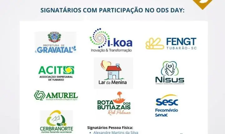 Gravatal sedia a 4ª edição do ODS Day, evento regional dedicado a impulsionar os Objetivos de Desenvolvimento Sustentável (ODS). A iniciativa, promovida pelo Movimento ODS SC – Comitê de Tubarão e Amurel, com apoio da Prefeitura de Gravatal, acontece no dia 26 de setembro, das 14h às 16h30, no Hotel Cabanas, em Termas do Gravatal.