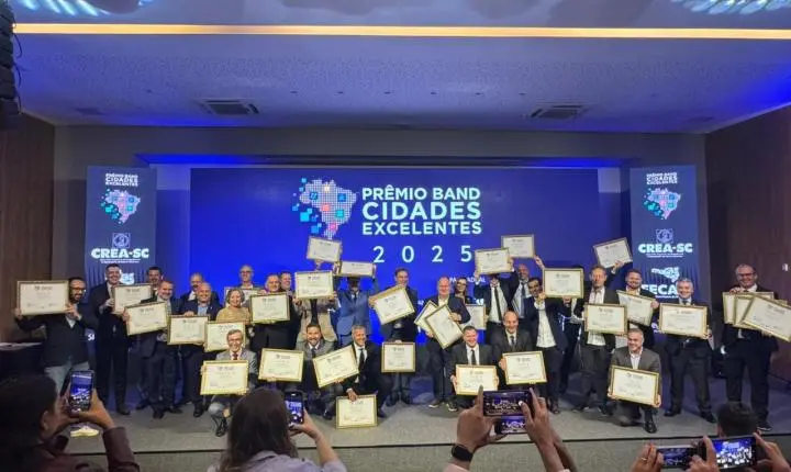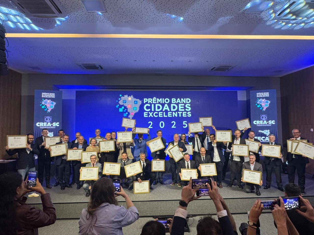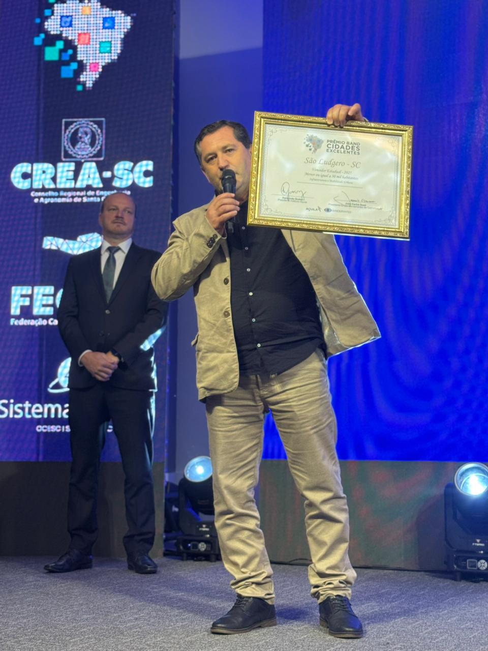 São Ludgero recebeu, na noite desta terça-feira, 18, o 1º lugar estadual na categoria Infraestrutura e Mobilidade Urbana, entre os municípios com até 30 mil habitantes, no Prêmio Band Cidades Excelentes 2025.